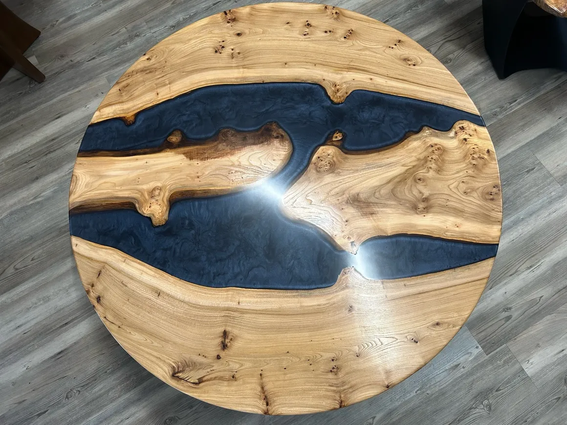 Customize your piece with resin rivers, ocean pours, or custom background materials. Choose from a wide range of resin colors & transparency levels.