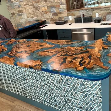 We specialize in handcrafted live edge tables, river tables, and ocean tables. Beyond tables, we can transform nearly anything in your home or business into a custom live edge piece — including countertops, bar tops, shelving, railings, mantels, and architectural accents — all crafted locally with the same attention to detail and craftsmanship.